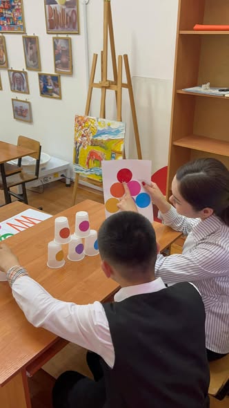 Оқушы бір саусағының көмегімен түстерді бір-біріне сәйкестендіреді.