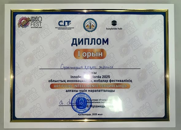 I орын – "Жасанды интеллект" секциясы бойынша