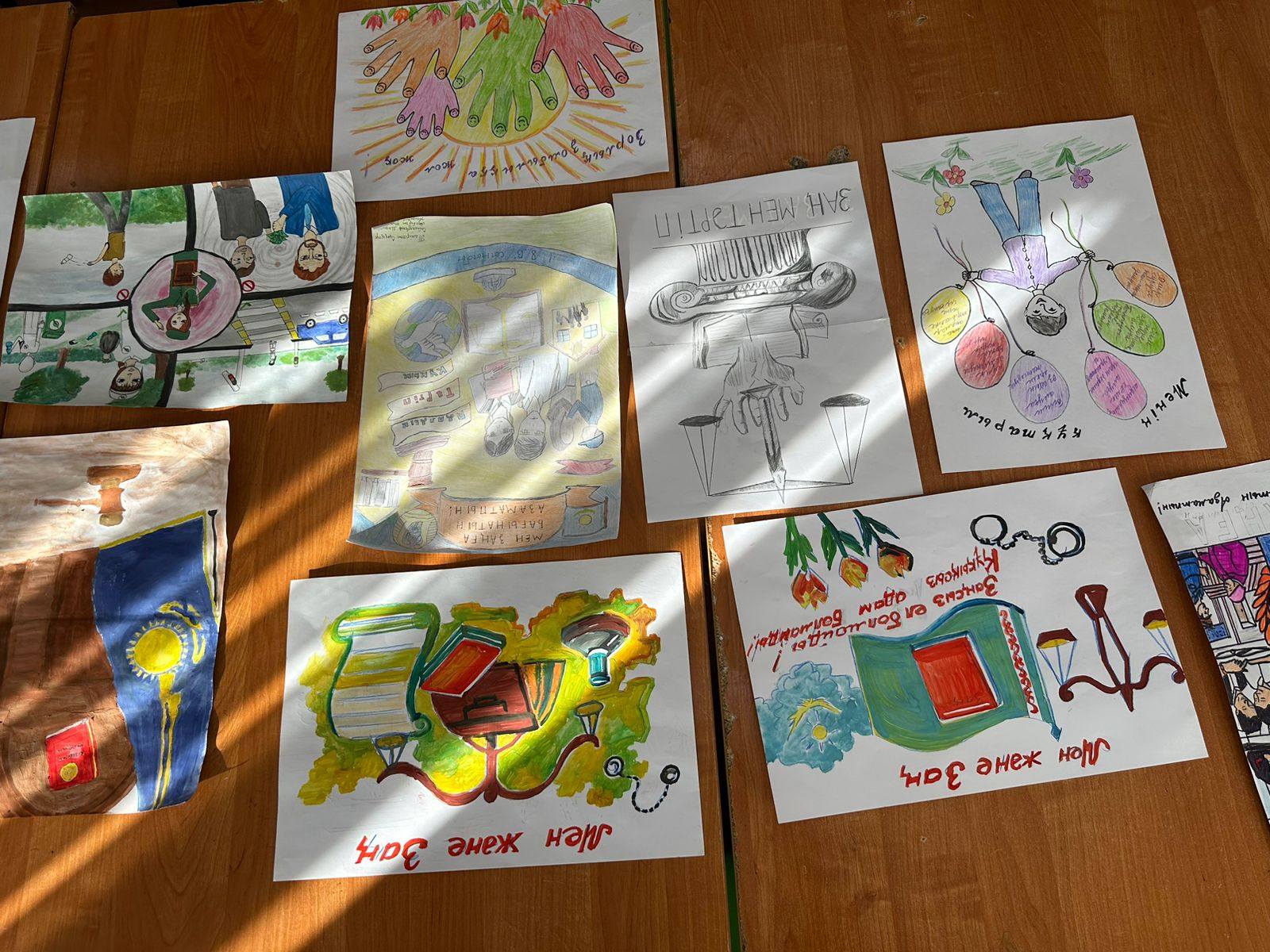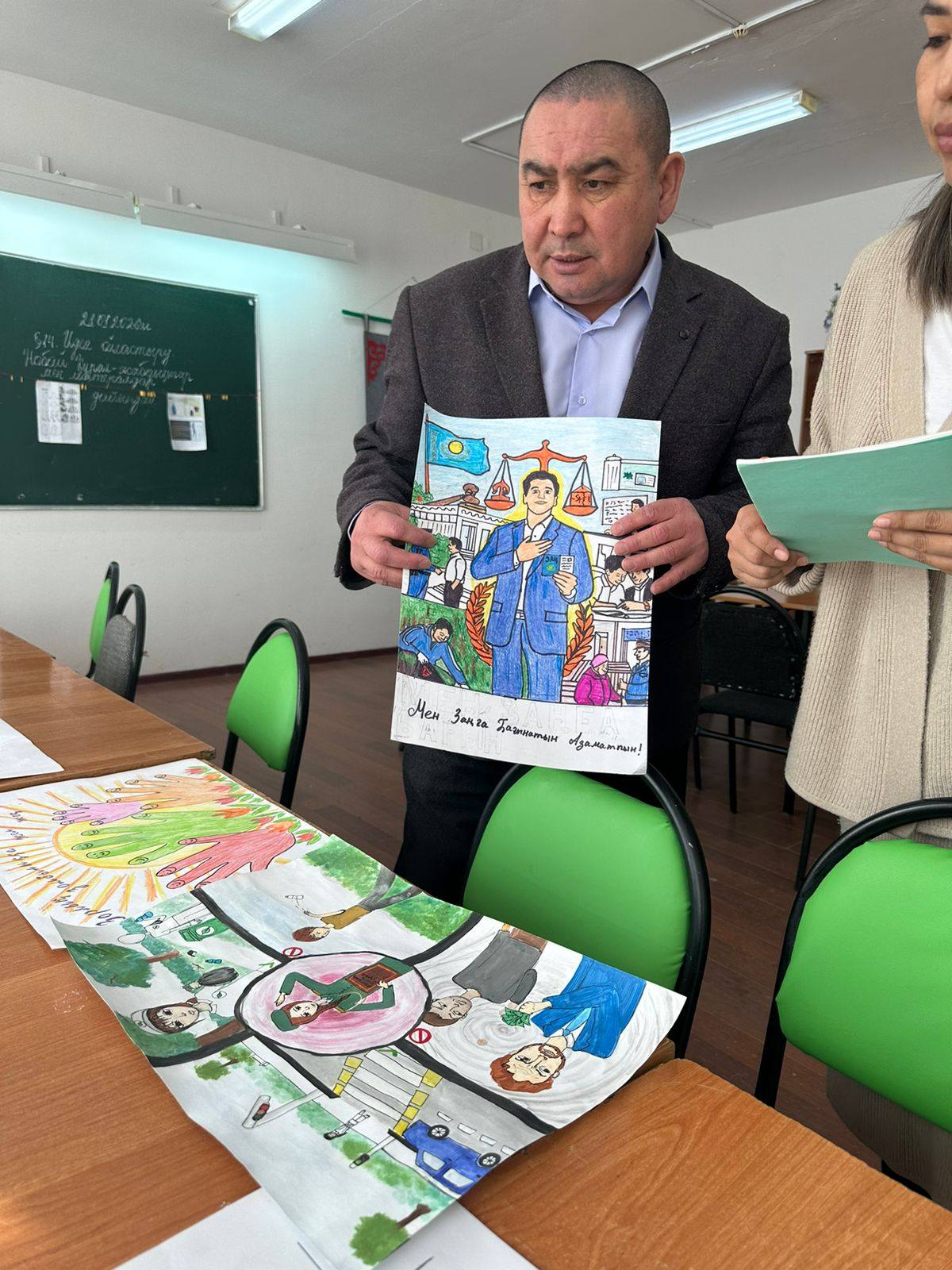 Байқауға ұсынылған жұмыстарда оқушылар заңға бағыну, қоғамдық тәртіпті сақтау, құқық пен міндет ұғымдарын күнделікті өмірмен байланыстыра отырып бейнеледі. Байқау оқушылардың шығармашылық қабілеттерін дамытуға және құқықтық мәдениетін нығайтуға ықпал етті.