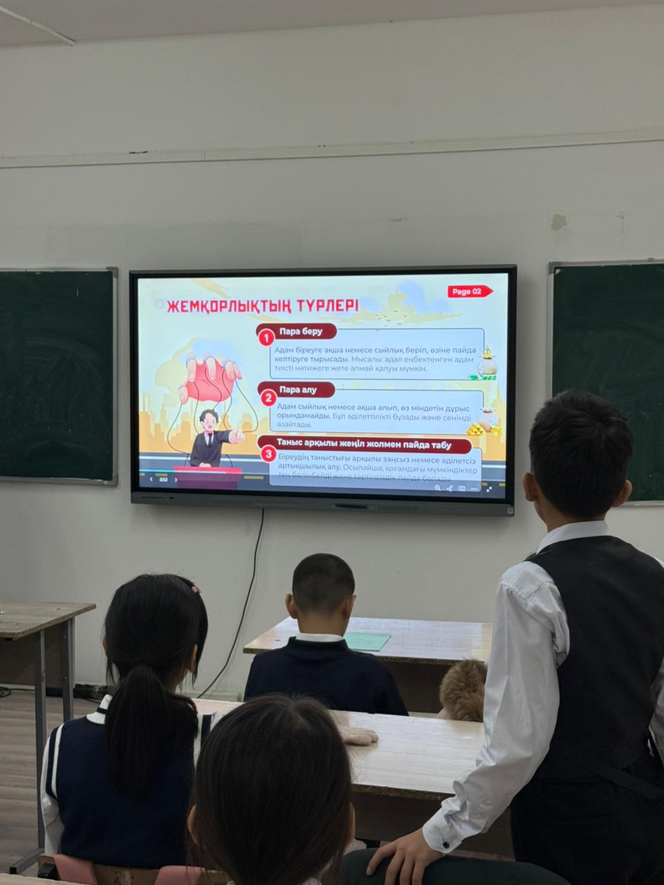 Тәрбие сағаты оқушылардың сыбайлас жемқорлыққа қарсы көзқарасын қалыптастыруға, әрбір таңдауында әділдік пен адалдықты басты құндылық ретінде ұстануға ықпал етті.