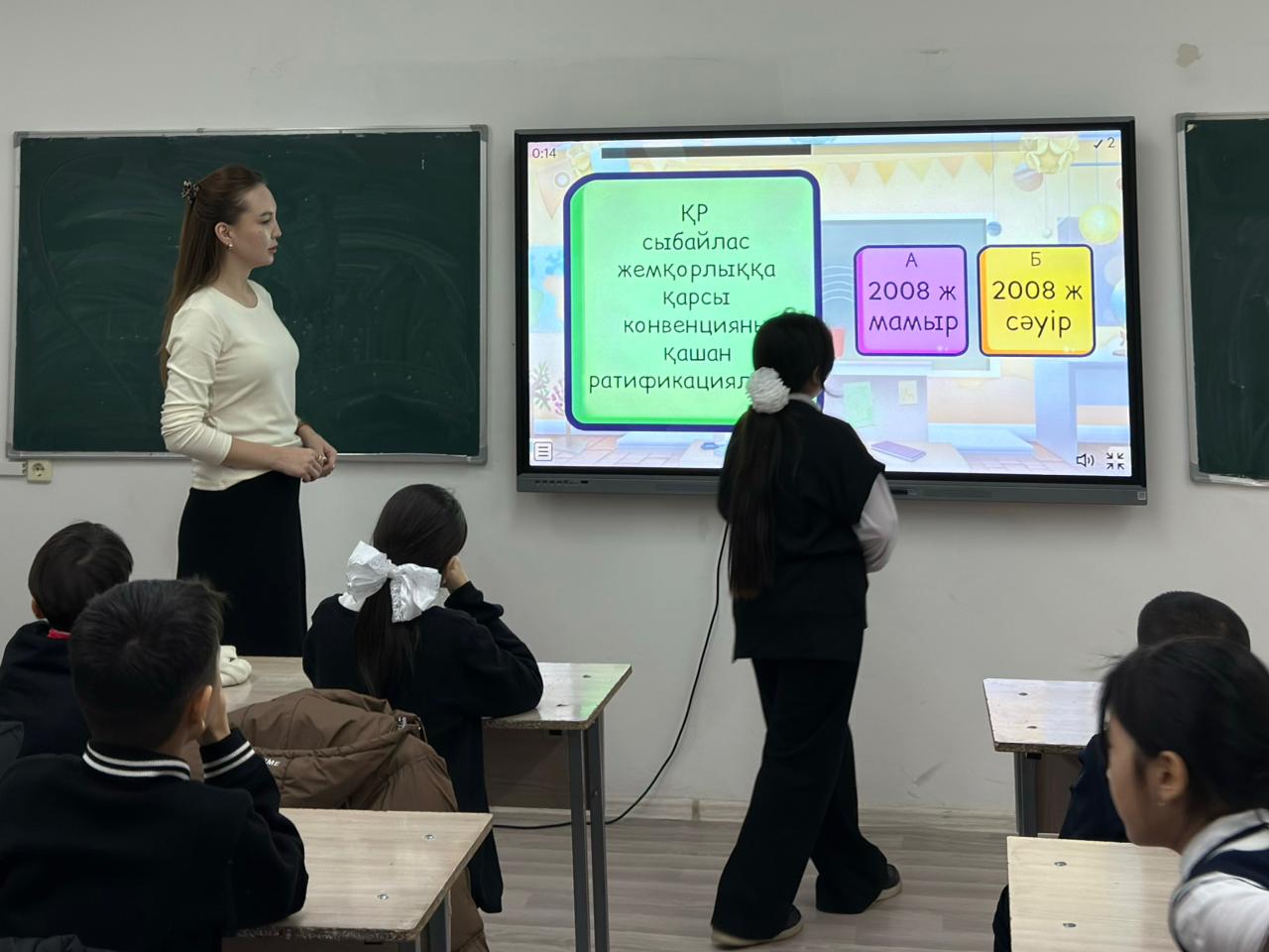 Сынып жетекшісі Жомарт Эльдана оқушыларға арнайы бейнероликтер көрсетіп, ЖИ арқылы тақырыпты меңгертетін тиімді тапсырмалар мен әдіс-тәсілдерді қолданды. Сабақ барысында оқушылар әділеттілік пен адалдықты күнделікті өмірдегі нақты мысалдар арқылы талдап, өз шешімдерін дәлелдеуге мүмкіндік алды.