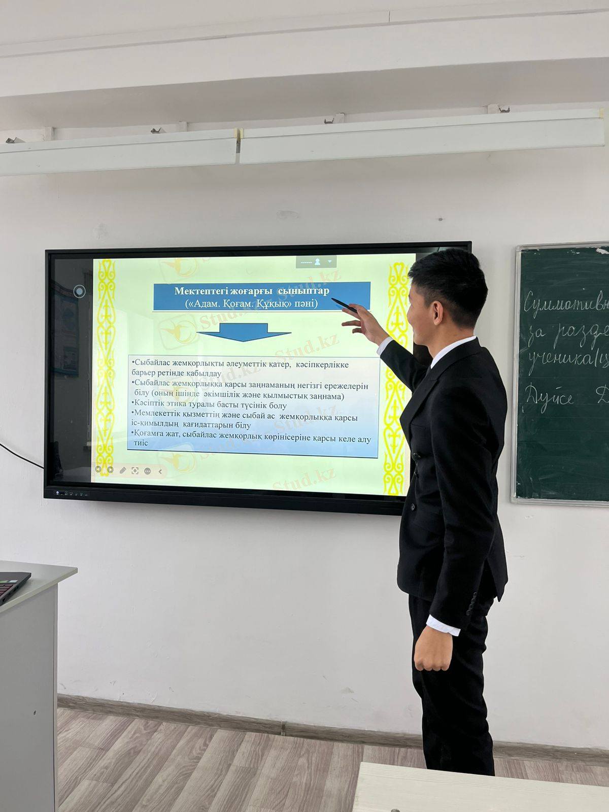 Сабақтың мақсаты – оқушыларға сыбайлас жемқорлықтың мәнін түсіндіру, оның қоғамға, мемлекетке және адам өміріне тигізетін зиянын нақты мысалдар арқылы көрсету. Сонымен қатар, құқықтық сауаттылықты арттырып, әділдікке, адалдыққа және жауапкершілікке тәрбиелеу.