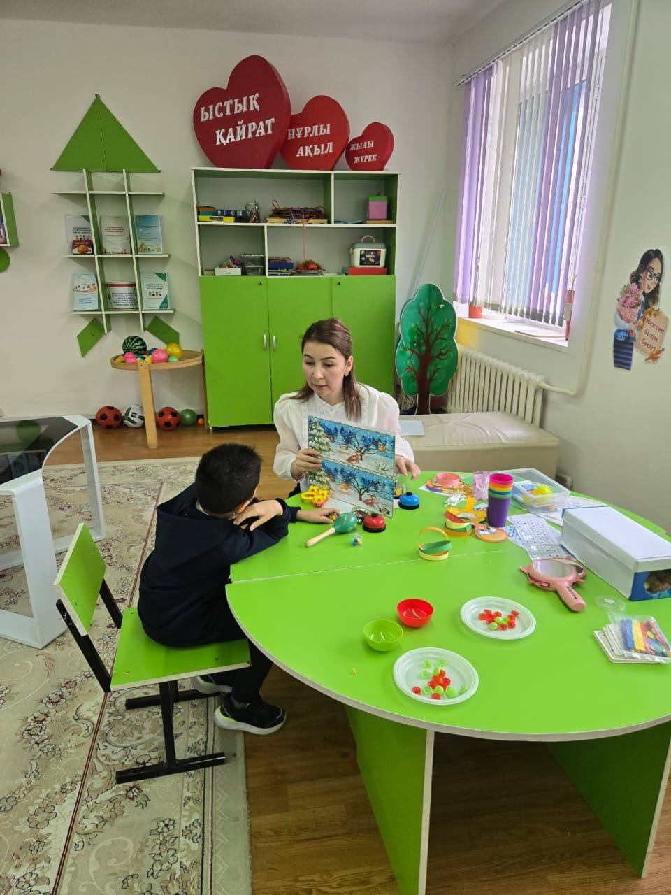15 қаңтар күні арнайы дефектолог мамандар «Қозғалыс арқылы даму: таным, оқу, жазу және математикалық сауаттылықты қалыптастыру»тақырыбында ашық есік күнін жалғастырды. Іс-шараның мақсаты – ата-аналарға баланың дамуын кешенді қолдаудың маңызын түсіндіру және үй жағдайында қолдануға болатын тиімді, қарапайым әдіс-тәсілдермен бөлісу.Сабақтар барысында EduQuest платформасындағы интерактивті тапсырмалар, түрлі- түсті доптар, геометриялық пішіндер, әріптер мен сандар жазылған карточкалар, лабиринттер мен нүктелі тапсырмалар қолданылды. Кері байланыс смайлик карточкалар арқылы ұйымдастырылып, ата-аналар тарапынан ұсыныстар мен пікірлер алынды.